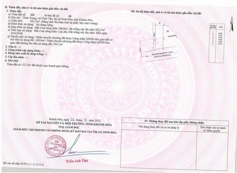 + Bán đất thôn Trung, Nam Ninh Hoà, Khánh Hoà