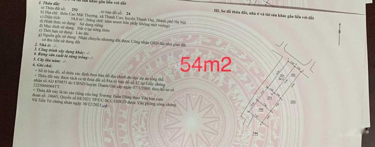 Nằm vị trí trục đường chính của thôn Cao Mật Thượng, Xã Thanh Cao, Thanh Oai. HN