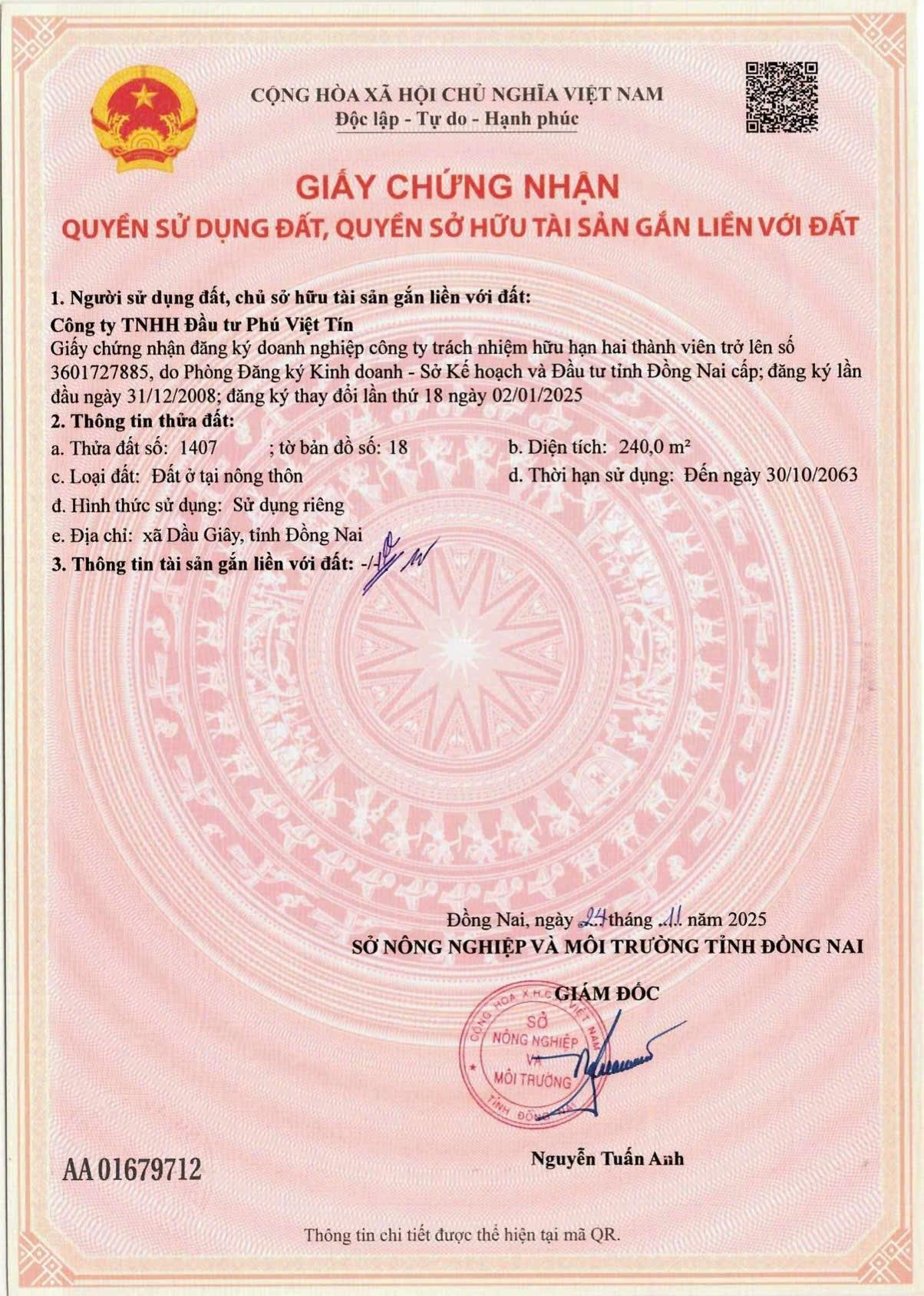 - CĐT: Công ty TNHH đầu tư Phú Việt Tín