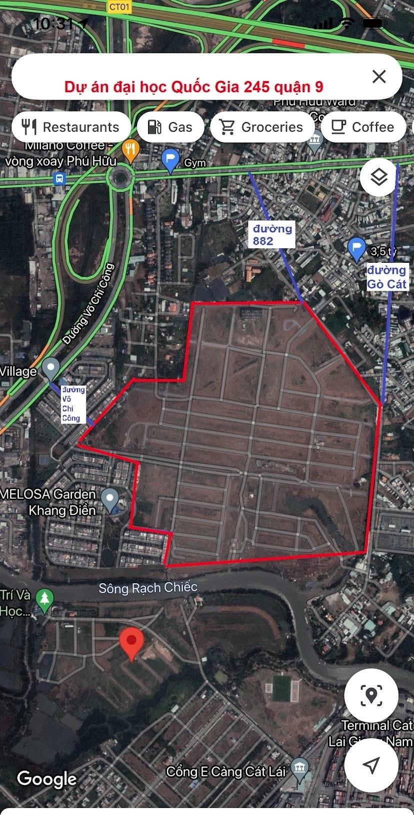 Vị trí: Đất nền thuộc dự án đại học (đại học) Quốc Gia 245 đường Gò Cát và đường 882 P. Phú Hữu Q. 9. Sau lưng dự án Melosa Khang Điền đường Võ Chí Công. cơ sở giao thông đang hoàn thiện: Đường trải nhựa, bó vỉa hè chuẩn bị bàn giao nền và bìa đỏ.