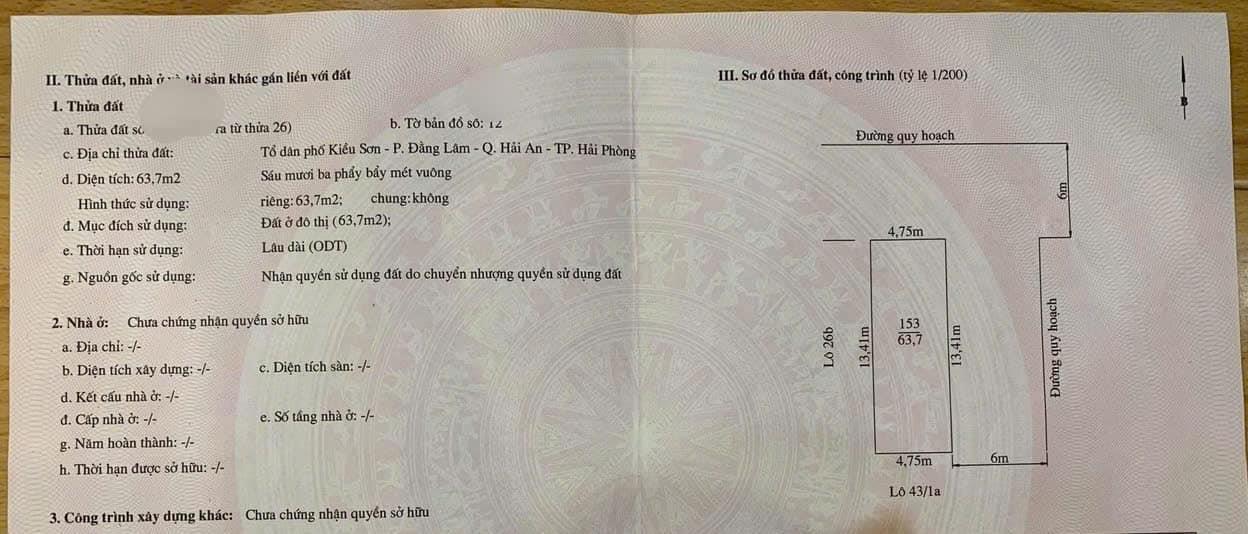 Bán lô đất sổ riêng 64 m2 tại Đường Kiều Sơn - Đằng Lâm - Hải An - Hải Phòng, giá 3,57 tỷ