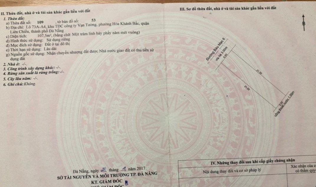 Bán đất đường đường Bàu Mạc 6, Liên Chiểu Đà Nẵng.