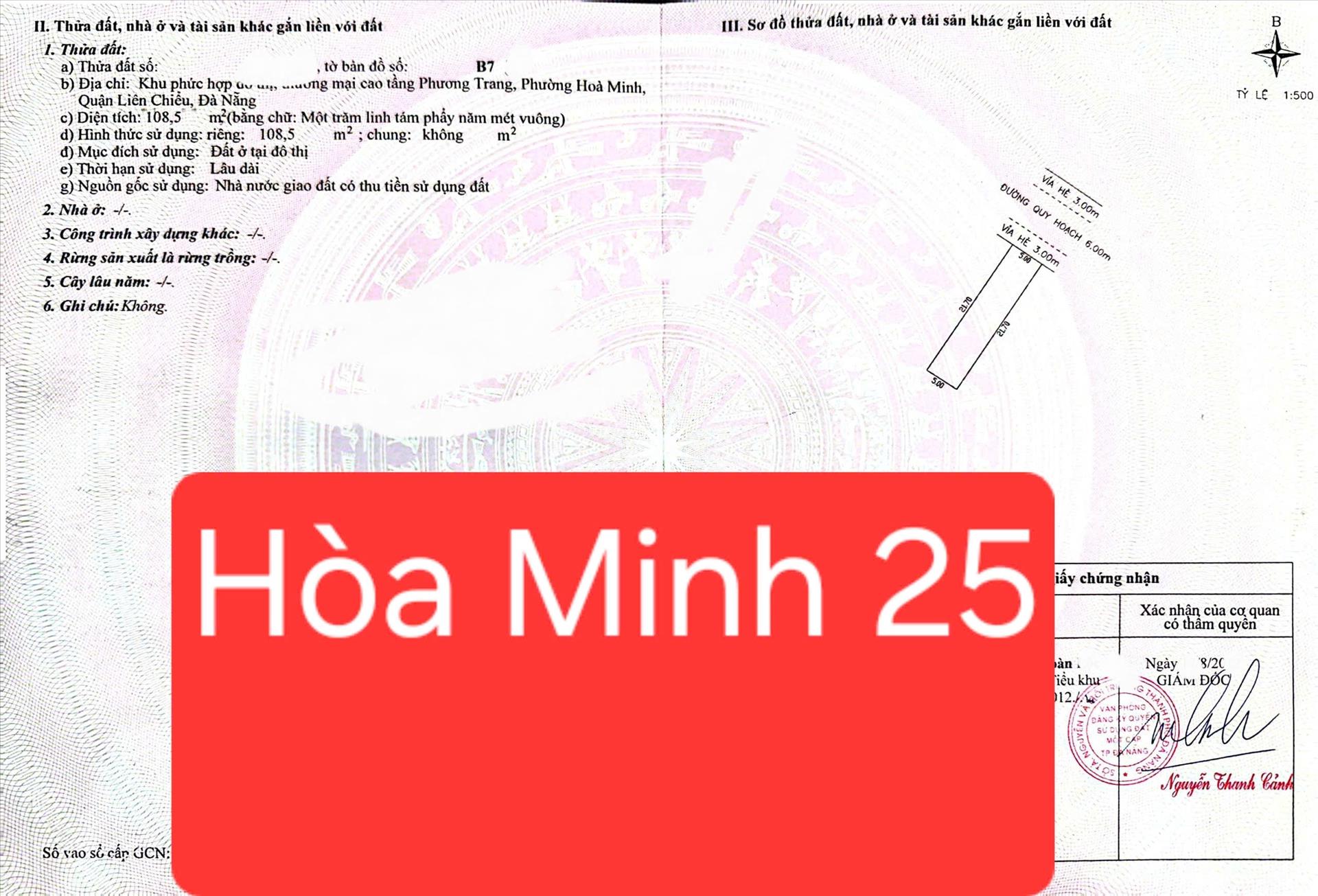 Bán 1 cặp đất đường Hòa Minh 25 - Trục thông Nguyễn Sinh Sắc
