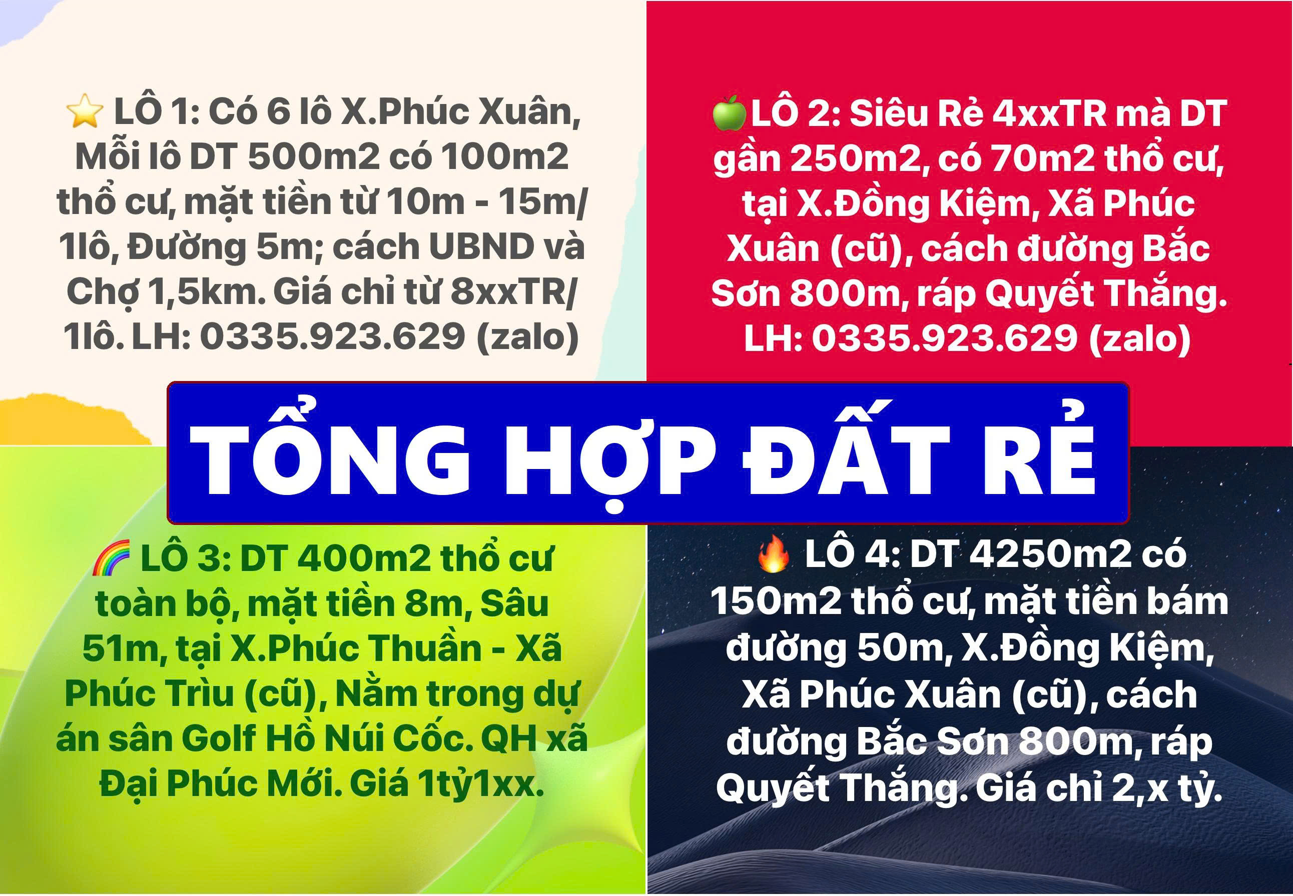 ⭐️ LÔ SỐ 7: 6 lô Phúc Xuân, mỗi lô diện tích 500m2 có 100m2 thổ cư, mặt tiền 10m-15m/1lô, Đường vào 5m. cách UBND và Chợ 1,5km, chỉ 𝟡𝕩𝕩𝕋ℝ/𝟙𝕝ô