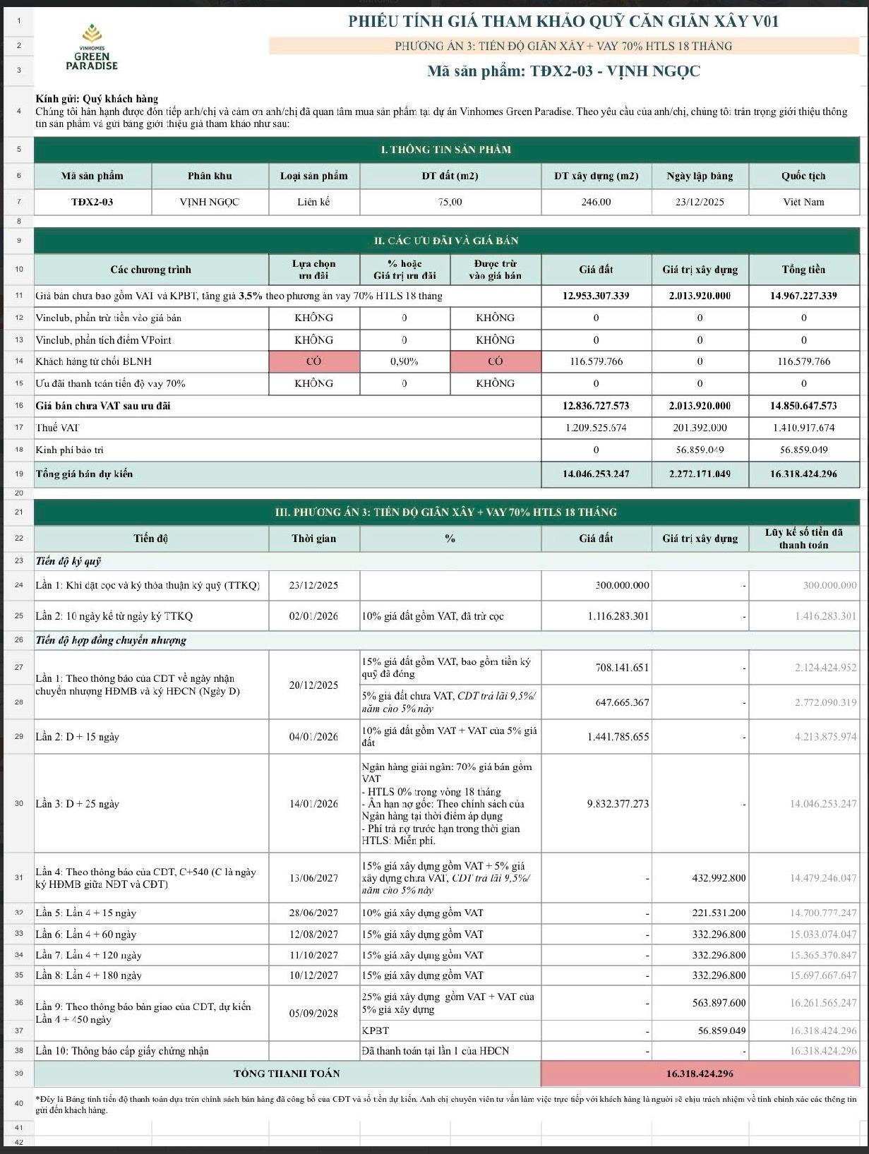 ✔ Đối diện công viên nội khu, tầm nhìn đẹp, môi trường sống trong lành