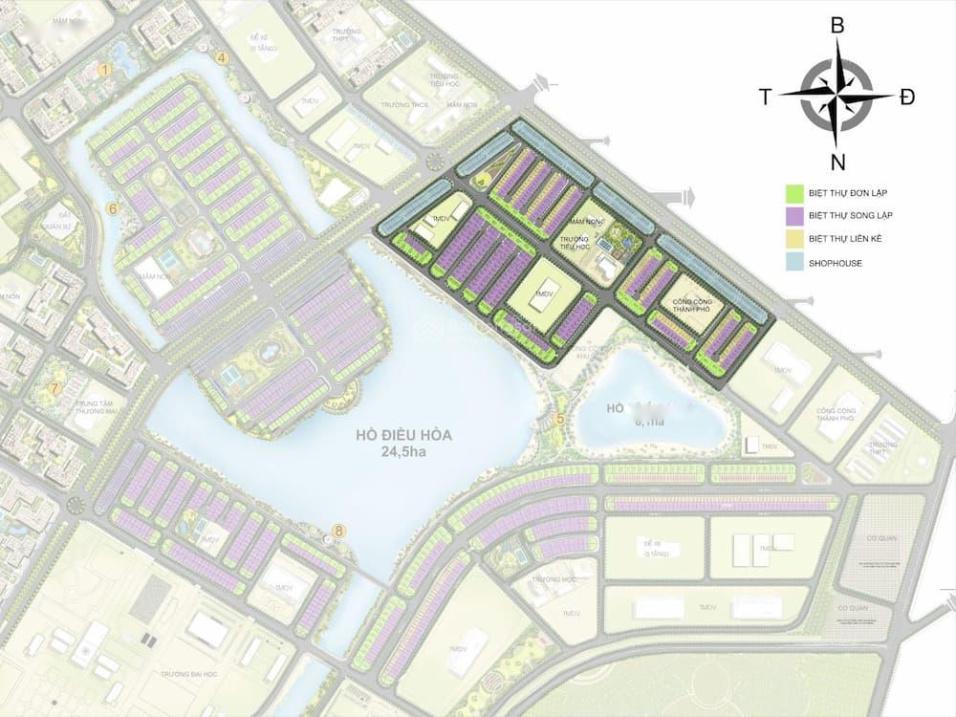 Hướng nhà: hướng Đông Nam và hướng Đông Bắc kế cận ngay cạnh TTTM Vincom Megamall và Biền hồ nước mặn.