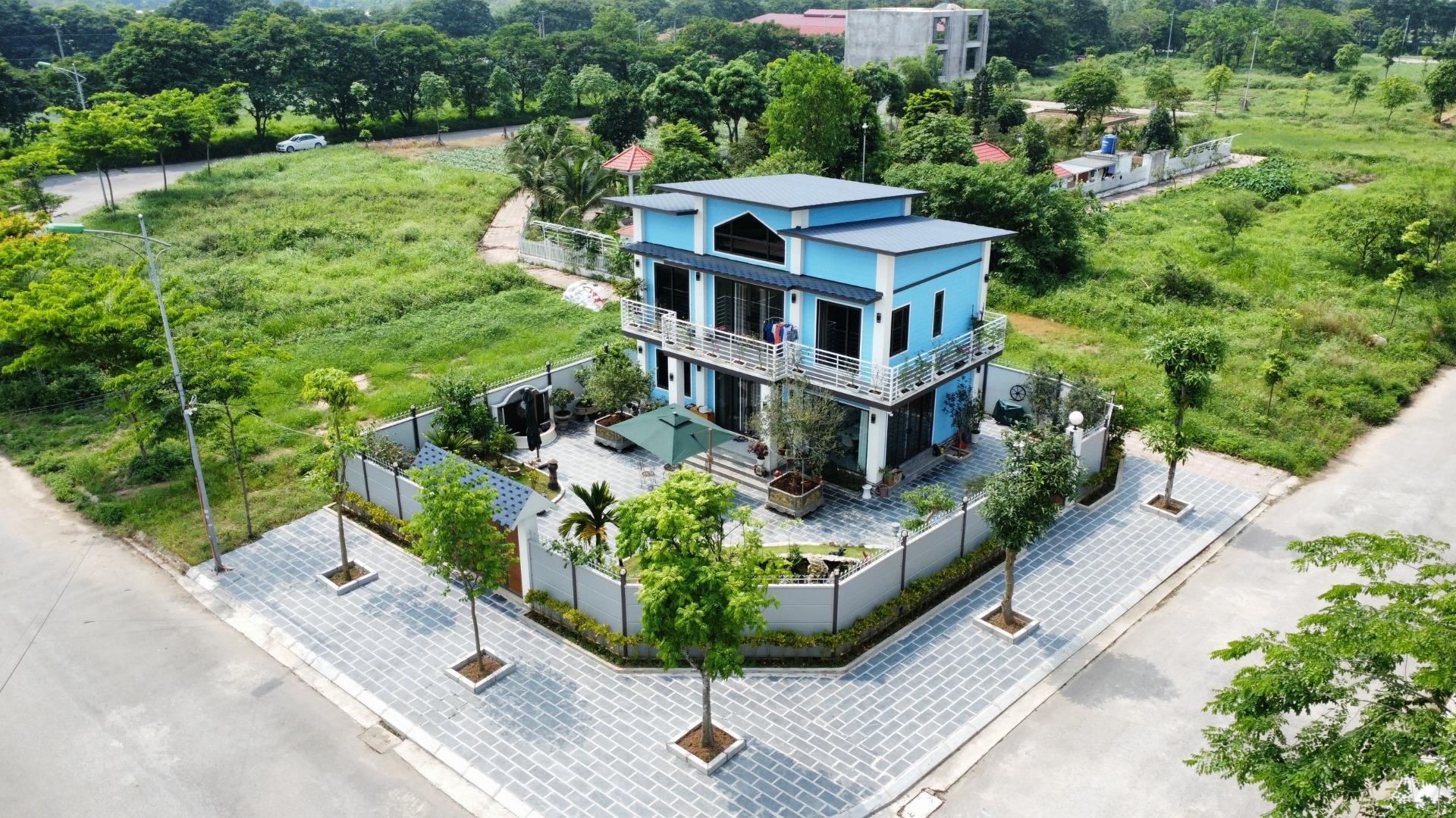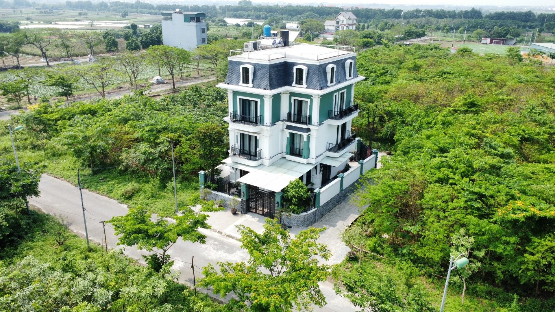 DT đất: 285m, DTXD 95m/sàn. hướng Đông - bắc. căn biệt thự có 3 mặt thoáng, với 2 mặt đường rộng 18,5 vs 15,5m, có vườn hoa rộng 5 kilomet phía sau, bên hông có lối đi bộ. - vị trí trung tâm của dự án khi nằm ngay trục đường xuyên tâm, ra đại lộ 100m mê linh chỉ 70m.