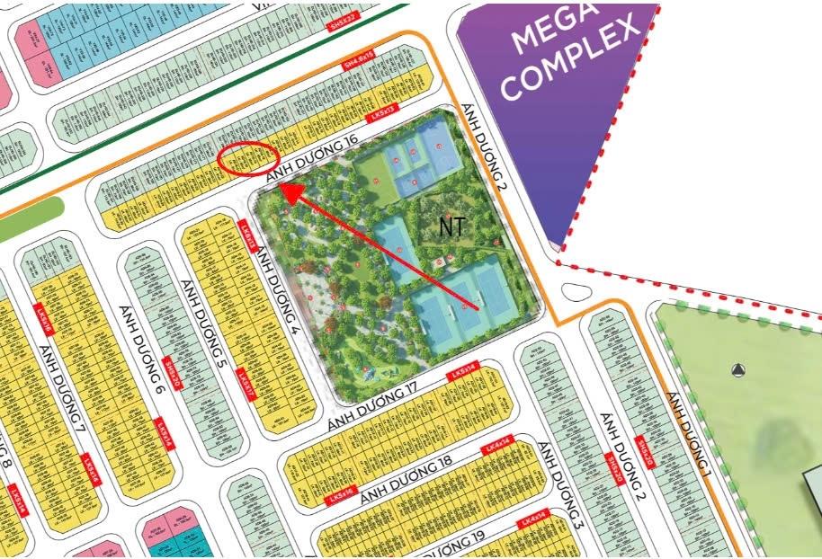 Vị trí dãy AD16 đối diện công viên nội khu, view trực diện vườn hoa, cây cối xanh mát.