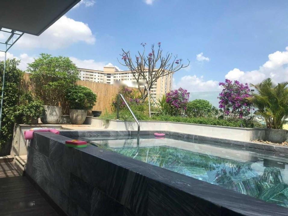 - Kết cấu: Hầm + 4 lầu + hồ bơi + sân vườn quanh nhà.