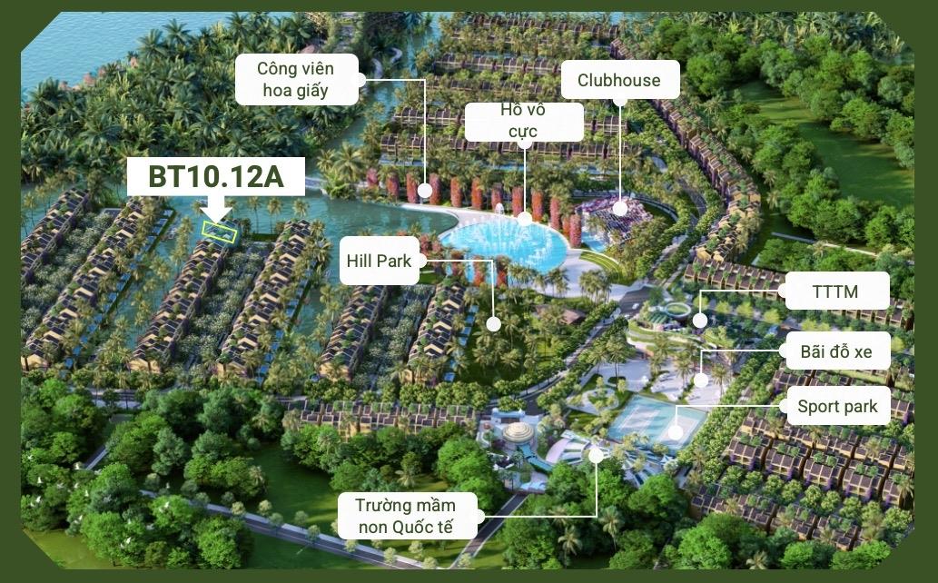 BT10.12A – Một trong những biệt thự đẹp và giàu tiềm năng nhất phân khu Forestside Villa, nằm ngay trục cảnh quan trung tâm, bao quanh bởi mảng xanh tự nhiên và mặt nước đặc trưng của rừng dừa Cẩm Thanh. Đây là lựa chọn lý tưởng cho KH tìm second home sinh thái, không gian an yên để tái tạo năng lượng cuối tuần, đồng thời là TS tích lũy truyền đời ngay tại Hội An.