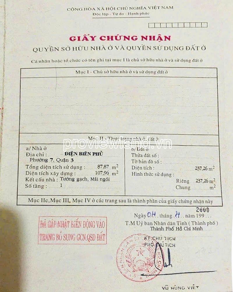 Bán nhà cũ MT Điện Biên Phủ, P. Võ Thị Sáu (Xuân Hoà), Q. 3, Sài Gòn