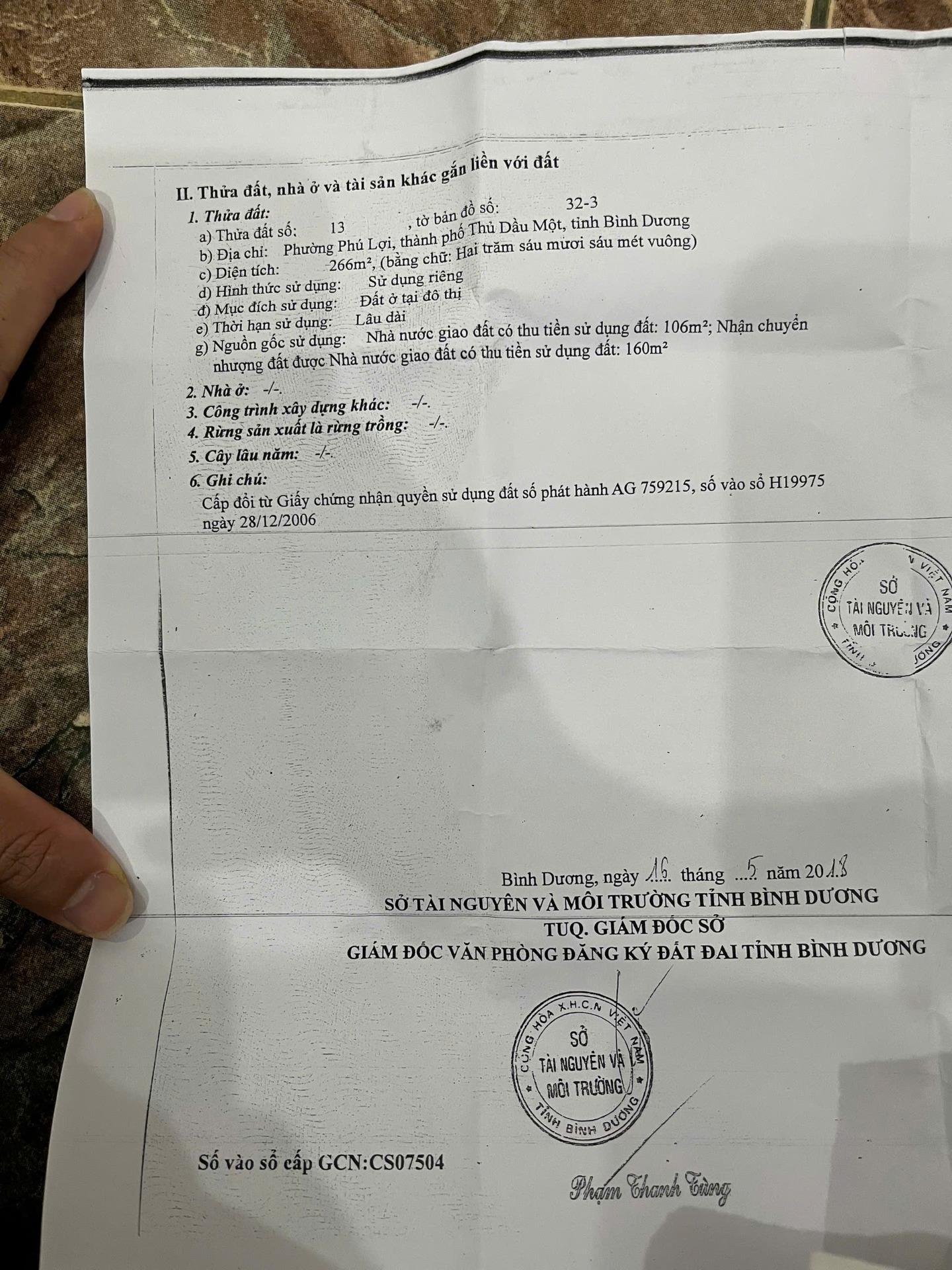 Cơ hội hiếm có để sở hữu quỹ đất sạch, DT lớn ngay MT đường huyết mạch tại TP. Thủ Dầu Một, Bình Dương. Vị trí chiến lược, lý tưởng cho mọi loại hình KD cao cấp hoặc cho thuê dòng tiền khủng.