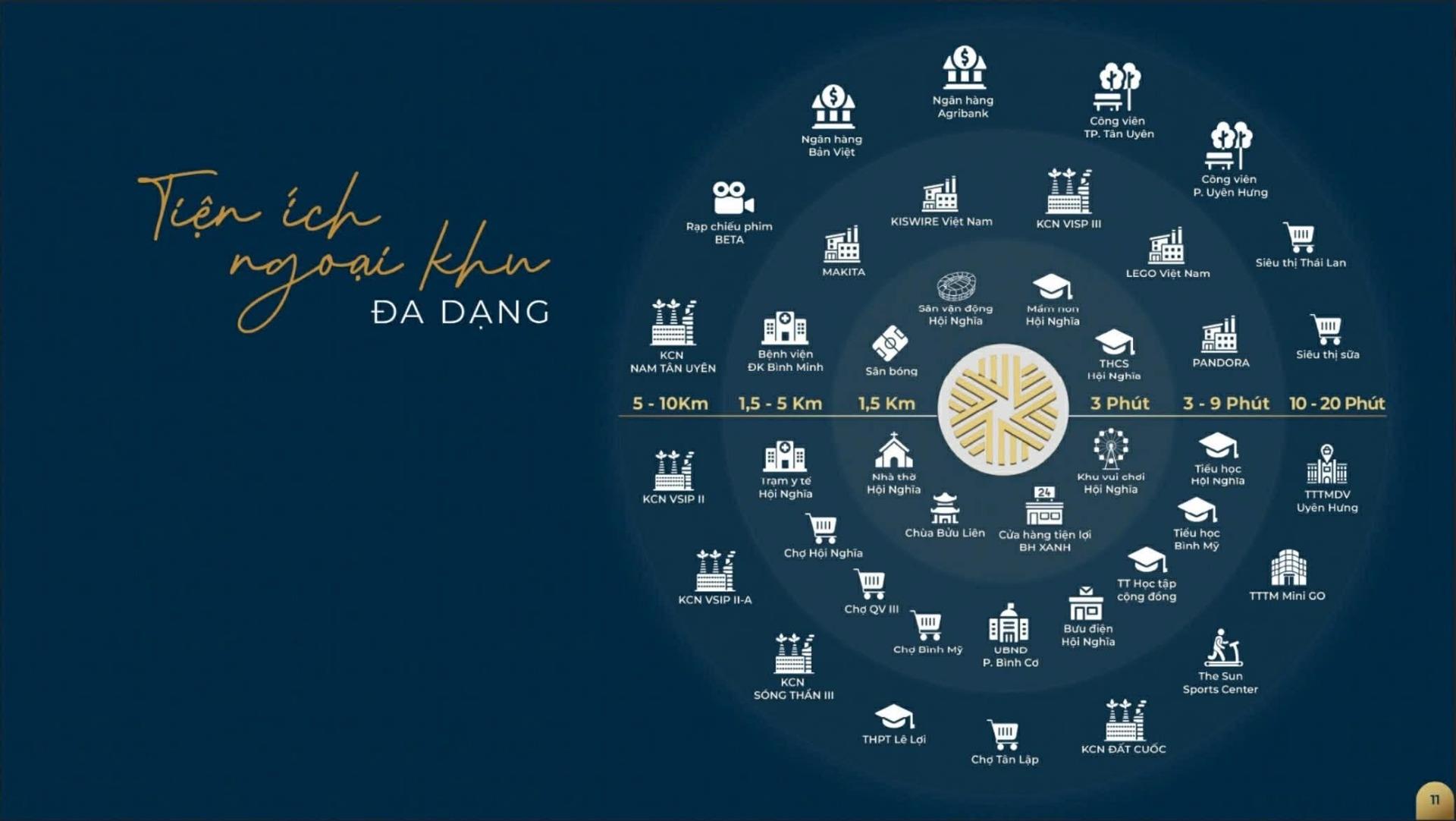 Về vị trí, dự án tọa lạc tại trung tâm công nghiệp Bình Dương, kết nối thuận tiện đến khu công nghiệp VSIP III, Nhà máy LEGO Việt Nam và các trục giao thông quan trọng như Vành Đai 4, ĐT15, ĐT746. Khu vực này hiện thu hút hàng chục dự án FDI, với hàng chục nghìn chuyên gia và kỹ sư làm việc lâu dài, tạo nhu cầu lớn về nhà ở chất lượng cao.