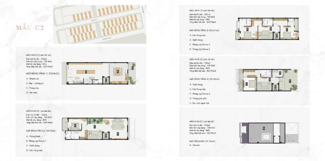 Quy mô: khoảng96–150 căn nhà phố thương mại shophouse tiêu chuẩn 5* quốc tế.
