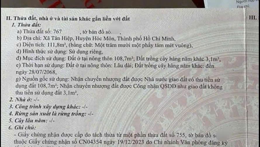 *Cụ Thể ở Tân Hiệp 31,gần trường Trung Bách Nghệ TPHCM