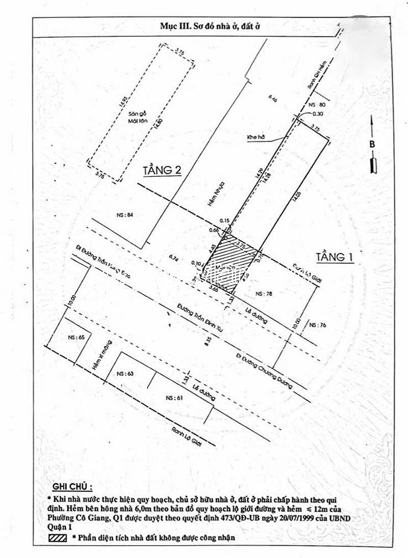 - Kết cấu hiện trạng: trệt + 1 lầu