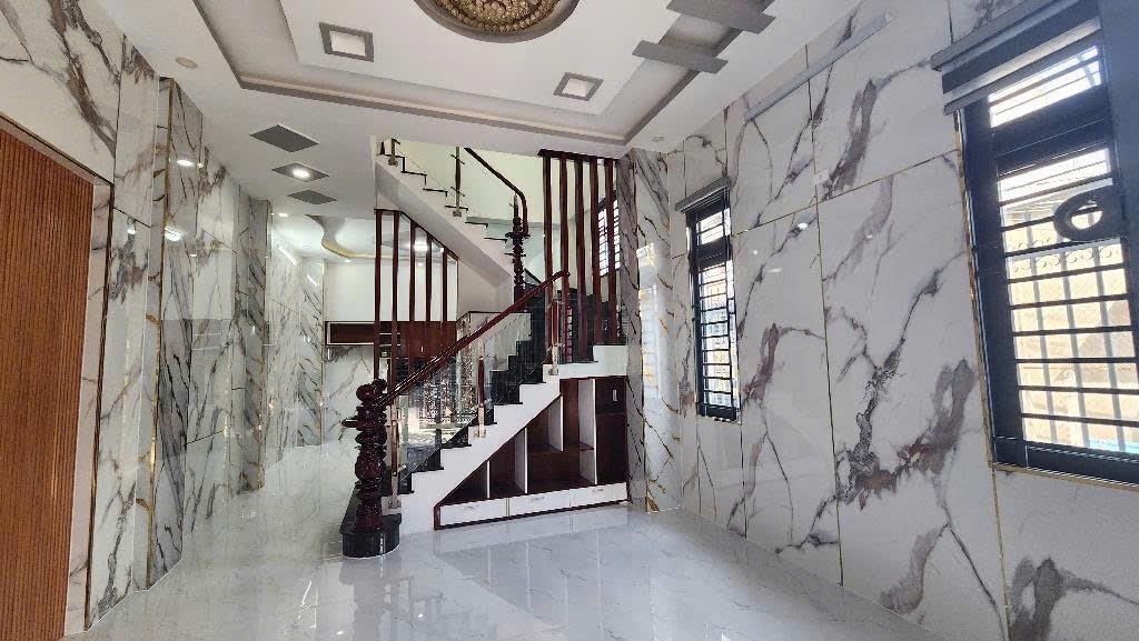 + Kết cấu : Trệt, 2 lầu mái thái, đúc BTCT với sân để