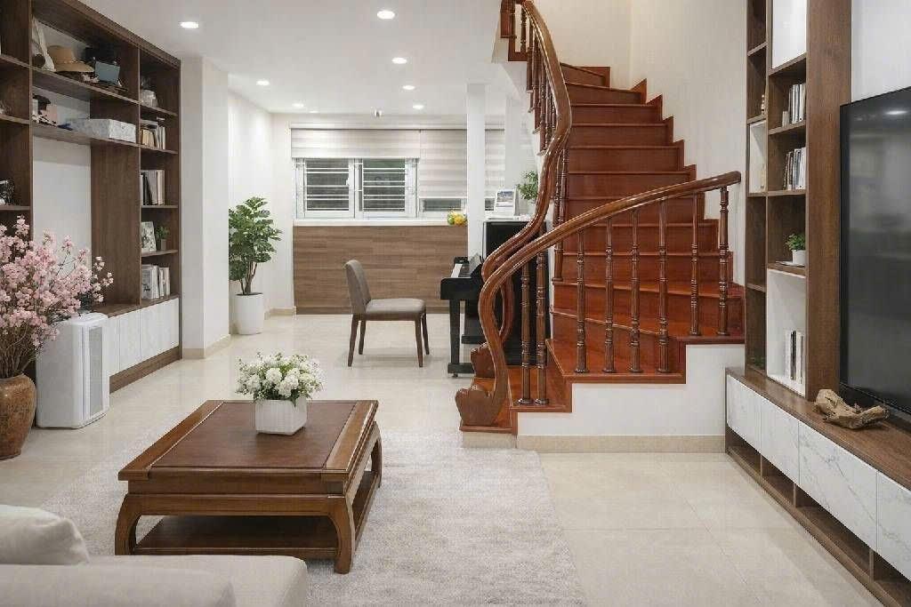 👉Tầng 1: Thông sàn, để xe, bếp, cầu thang cuối nhà.