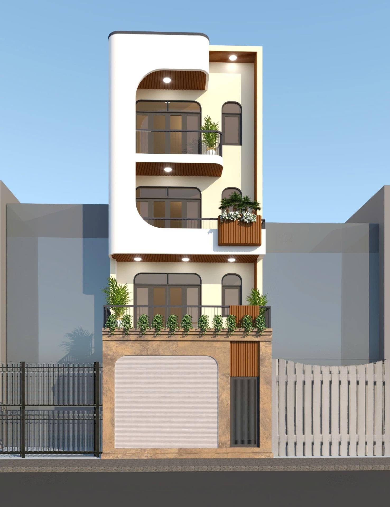 - Tầng 1: Phòng khách, bếp và khu để xe.