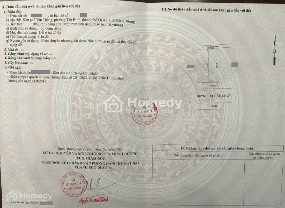 Mặt tiền đường Thống Nhất, P. Đông Hòa, TP. Dĩ An, tỉnh Bình Dương