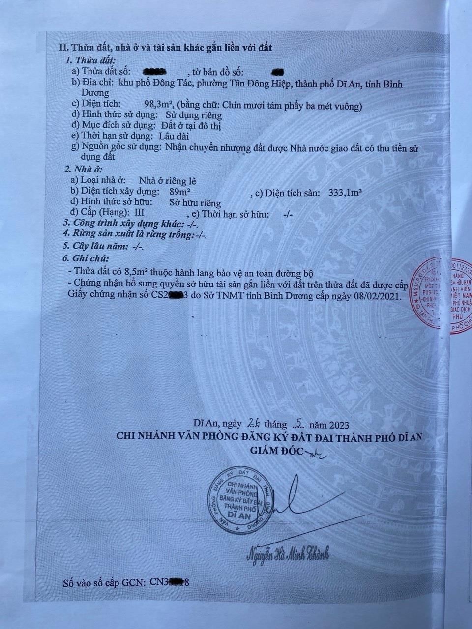 Mặt tiền đường Thống Nhất, P. Đông Hòa, TP. Dĩ An, tỉnh Bình Dương