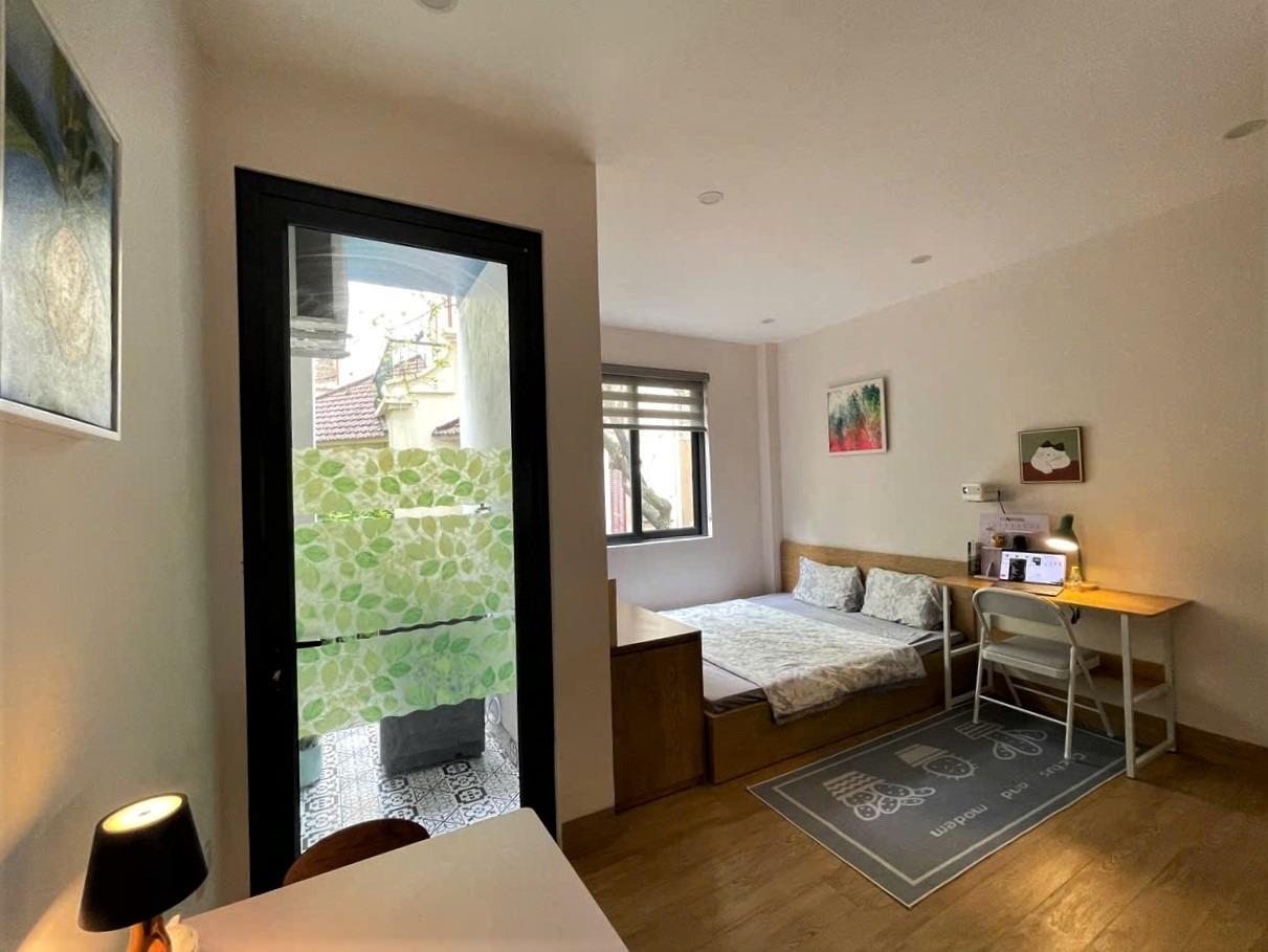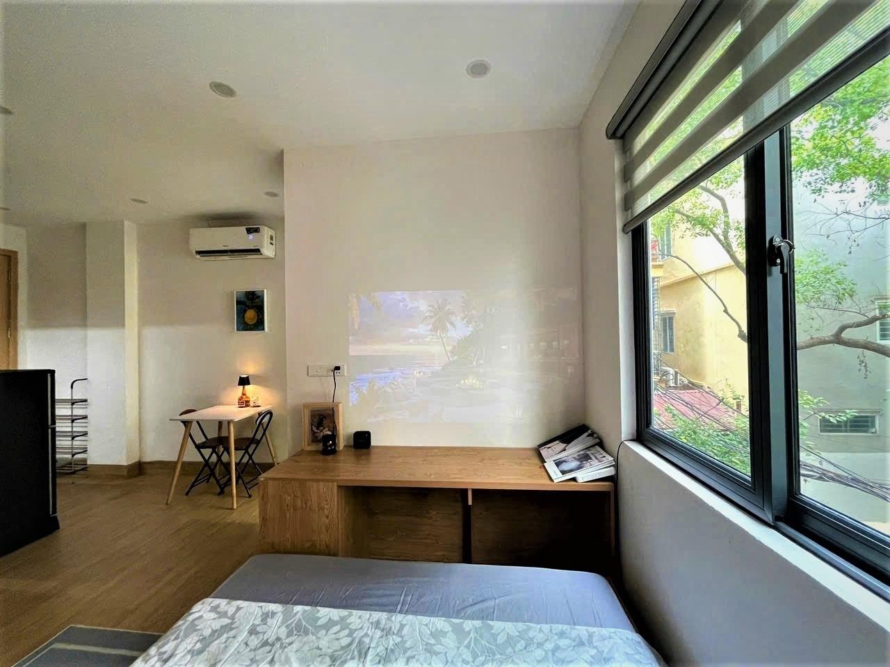 Phòng mới, đầy đủ tiện nghi với bàn làm việc, máy chiếu, máy giặt phơi đồ riêng, khép kín 100 phần trăm.