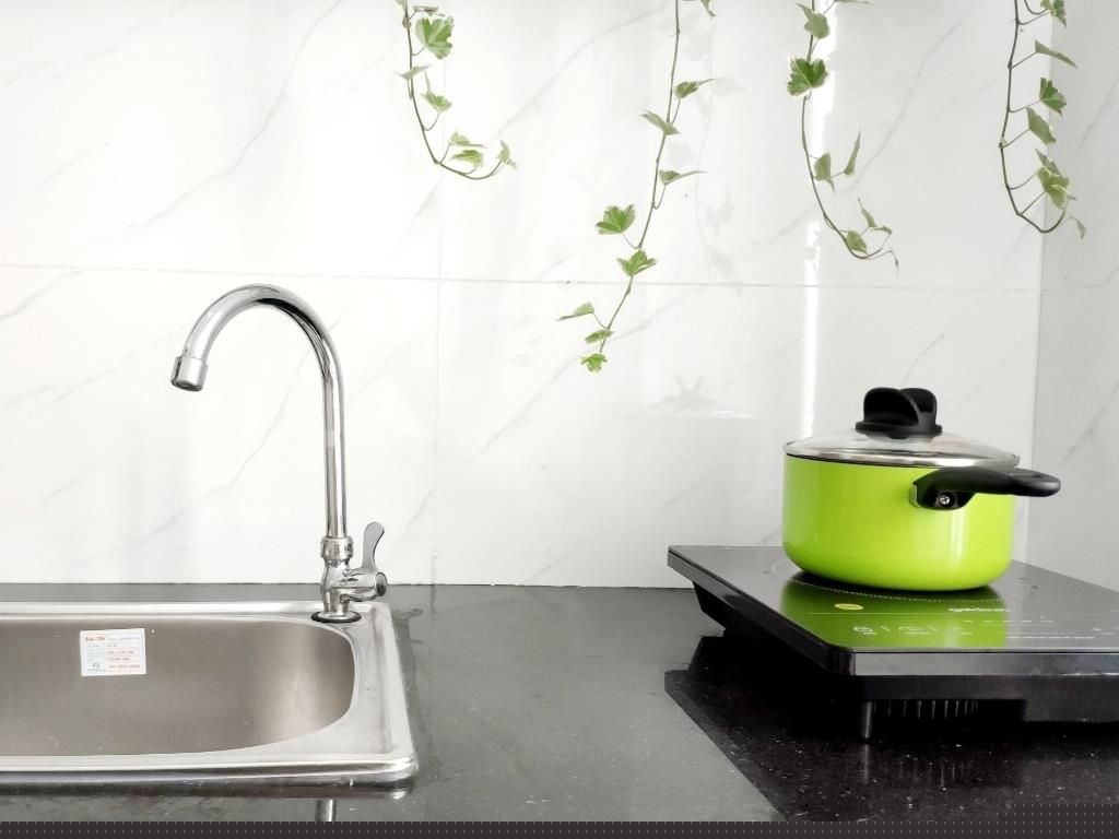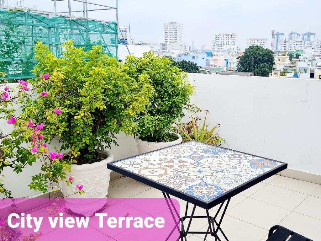 - Tòa nhà ít người vì chỉ có 7 căn, có khu vực tiếp khách và sân thượng chung cho mọi người cùng sử dụng, máy giặt