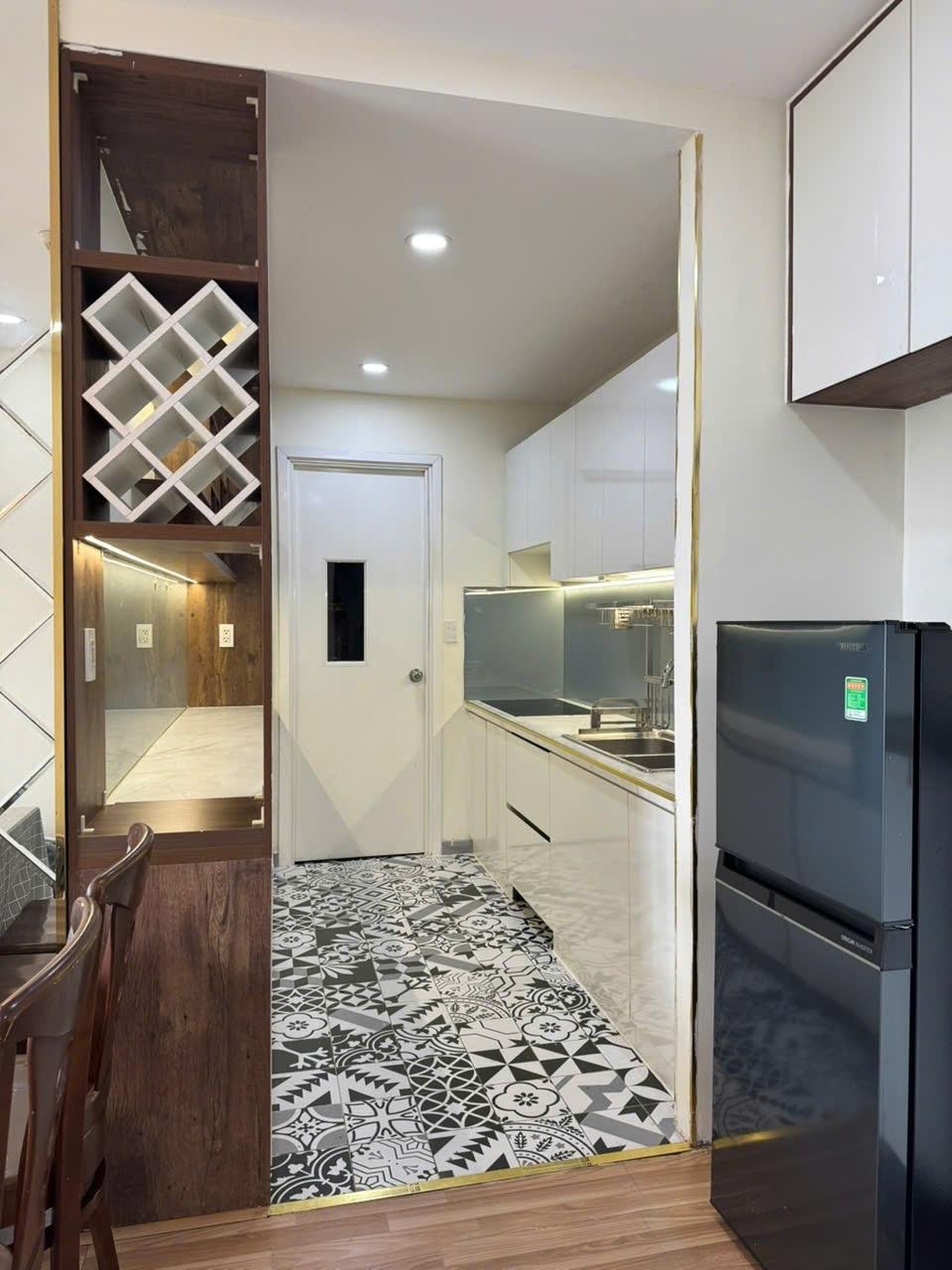 - Full bếp: bếp từ Hafele, full tủ bếp trên, dưới gỗ An Cường.