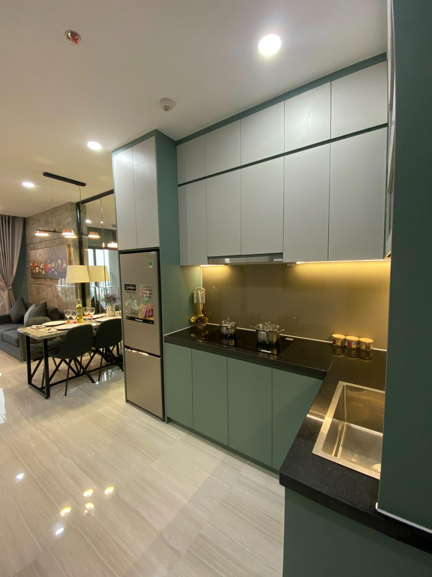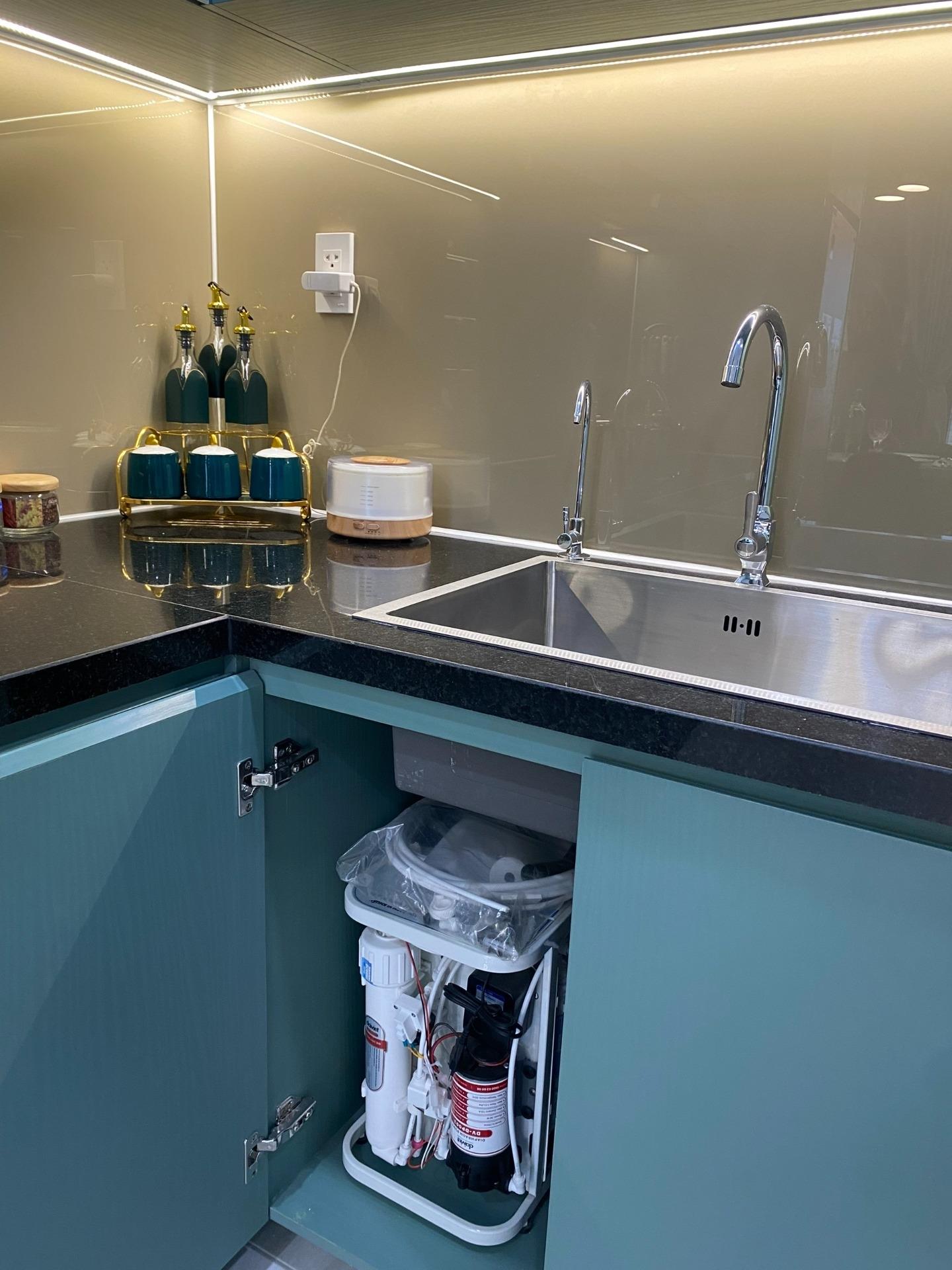 đc lắp đặt sẵn với không gian lưu trữ rộng rãi, sẵn sàng cho bạn sử dụng ngay. - Bồn rửa và máy lọc nước thông minh: Bếp trang bị bồn rửa inox và máy lọc nước thông minh, giúp bạn dễ dàng trong việc nấu nướng và sử dụng nước sạch hàng ngày.