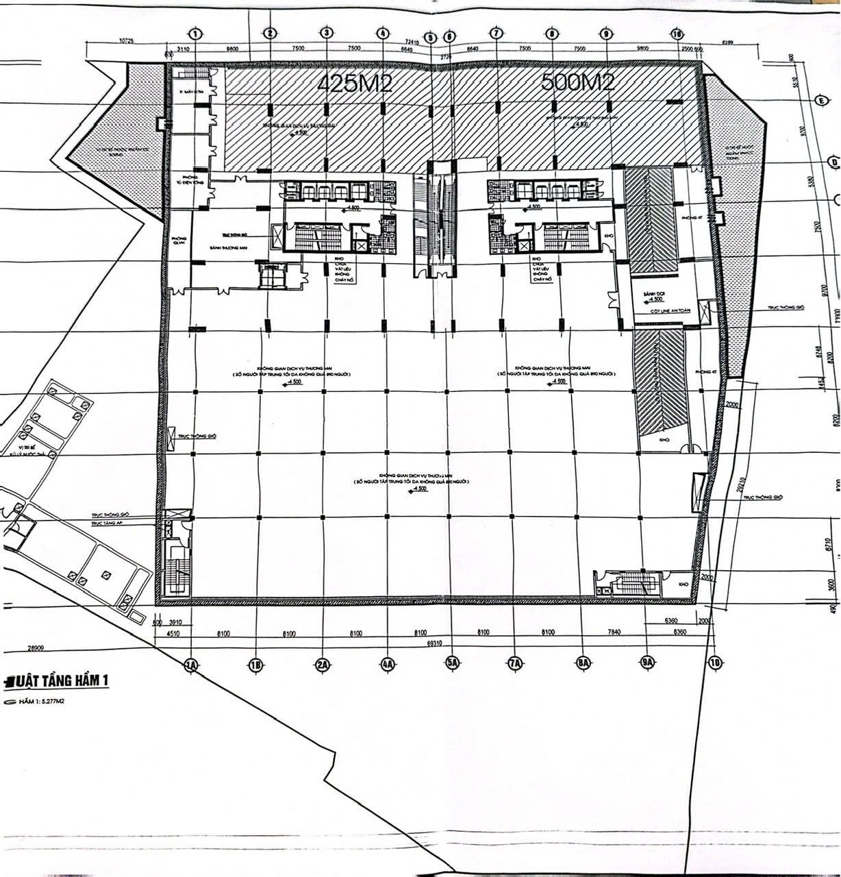 DT: Linh hoạt từ 400m2 – 600m2 (Mặt bằng thông suốt, vuông vức).