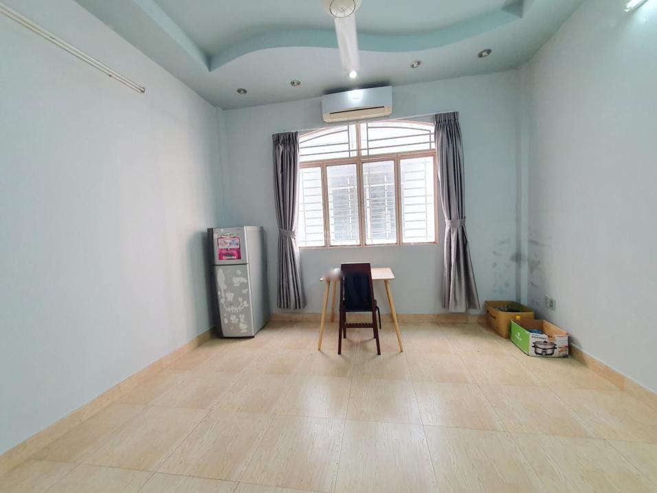 - Nội thất bao gồm: Máy lạnh, quạt trần, bàn làm việc, tủ lạnh, máy giặt (chung), một số đồ