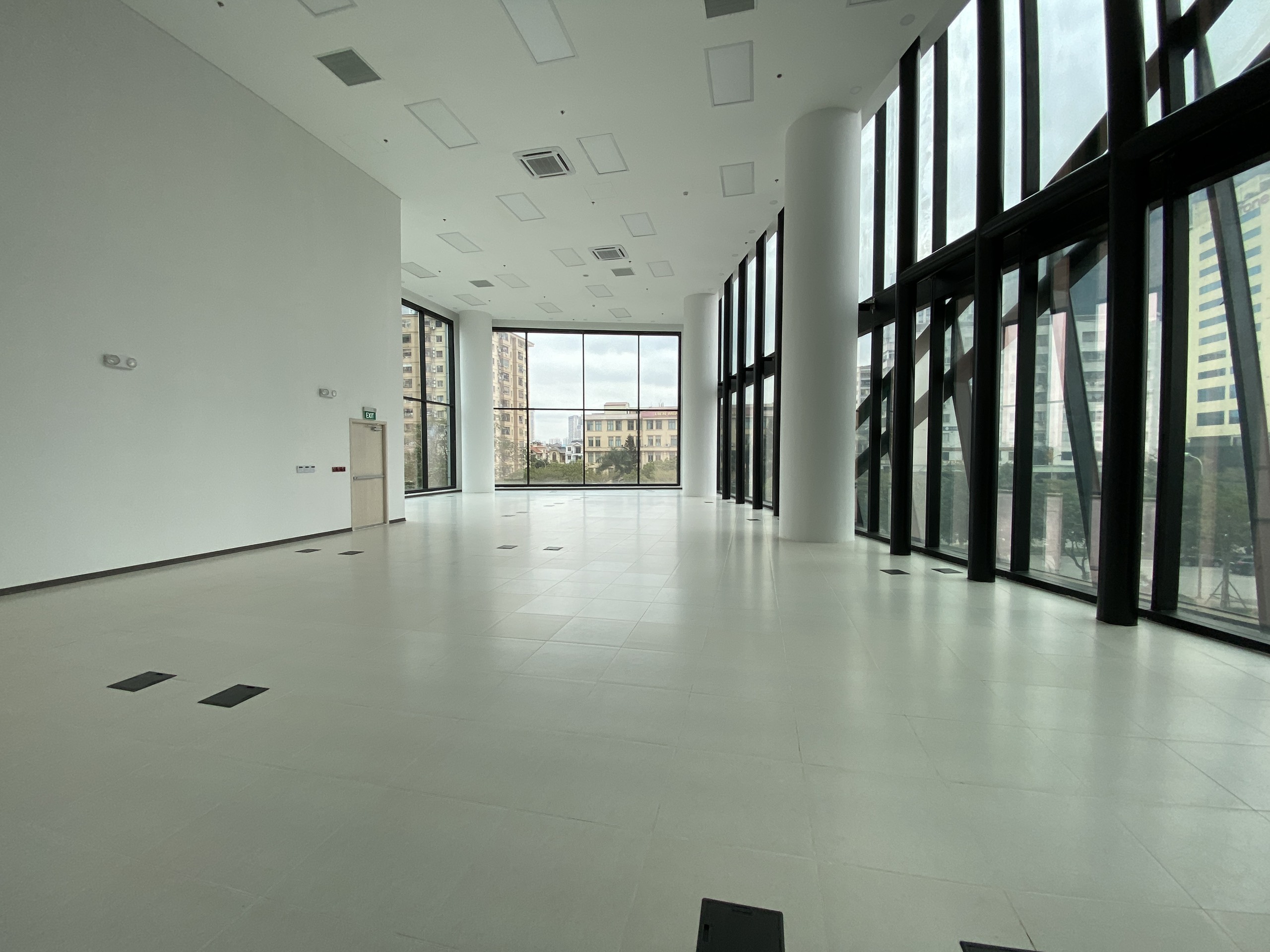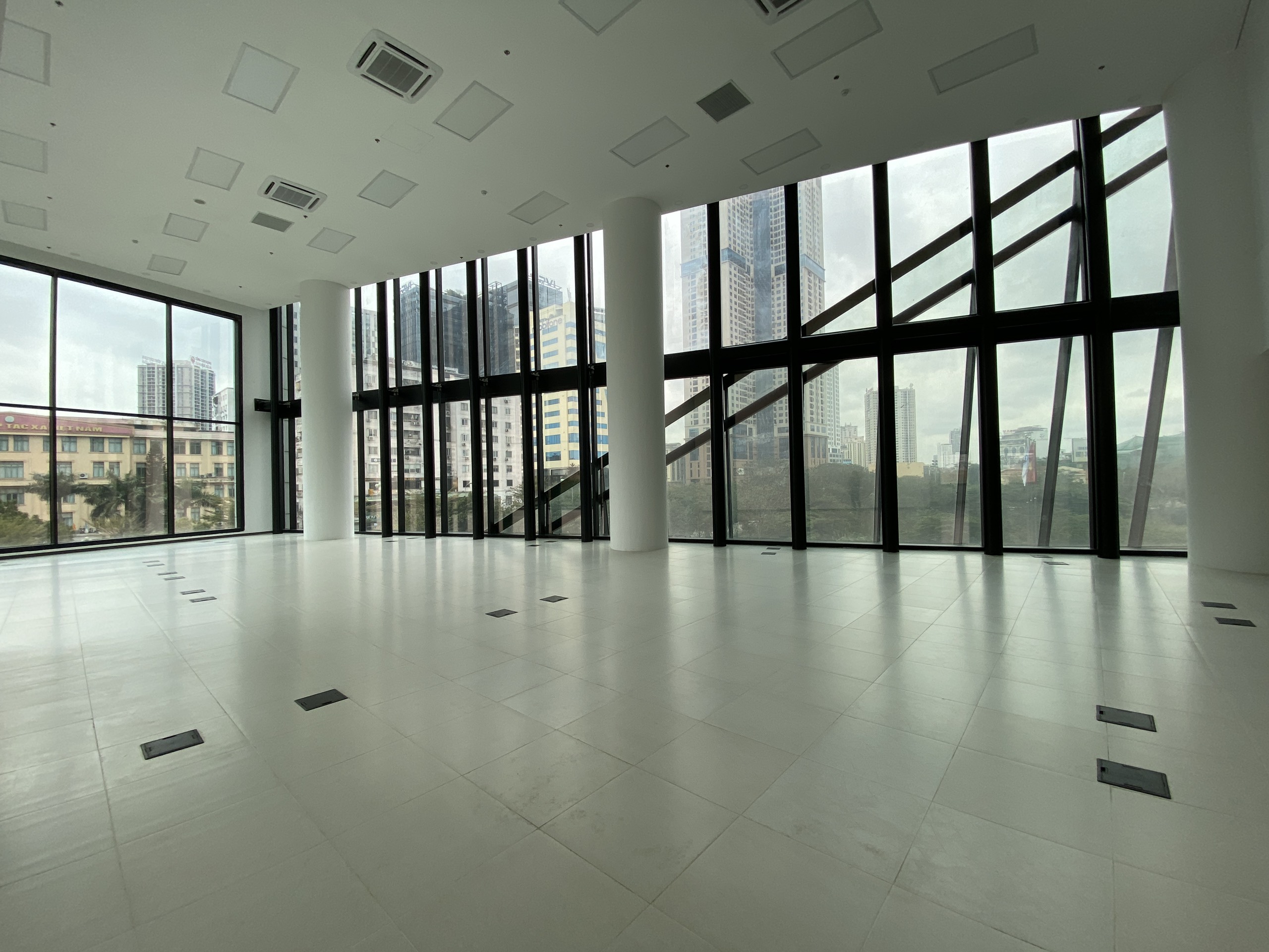 - Bàn giao gồm: Trần thả 2,7m, sàn bê tông cán phẳng, điều hòa, đèn điện, PCCC tiêu chuẩn, đầu chờ đường điện và mạng.