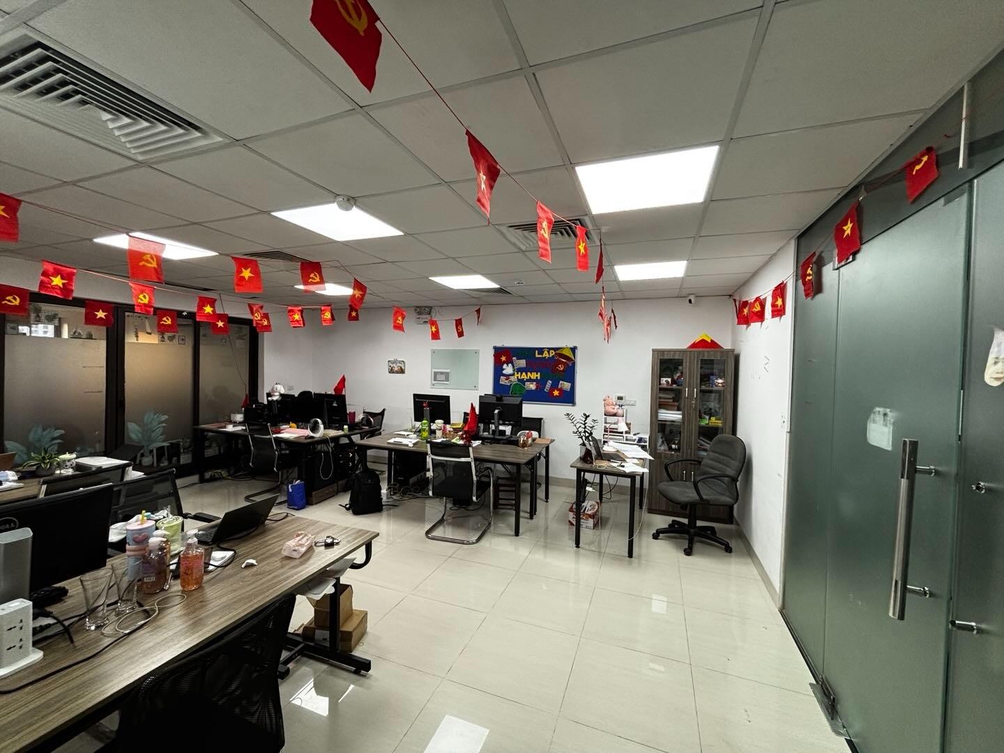 nhà vệ sinh riêng, 3 khu làm việc, có studio (tường vô cực) giá 20cho thuê : tr /tháng (hợp lý khu vực) phí 1,8DV : tr (bao gồm vệ sinh hàng tuần, bảo vệ 24/24 , quản lý, điều hoà, thang máy) - Chi phí khác: