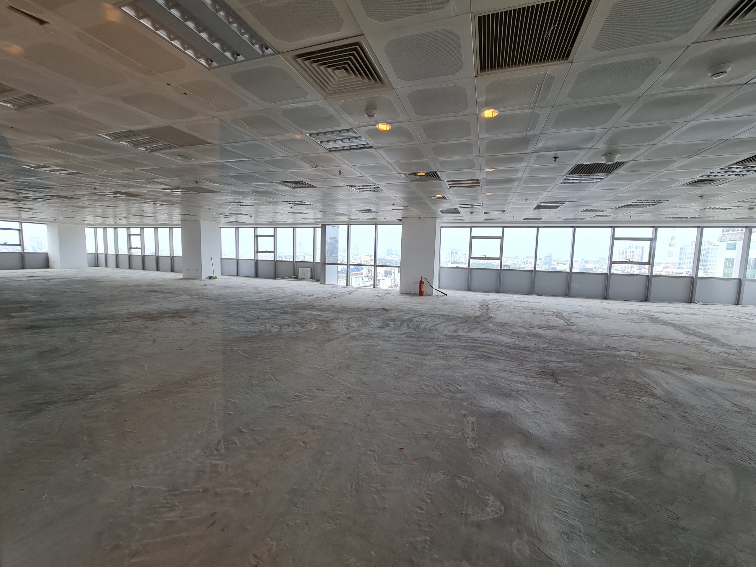 - Bàn giao gồm: Trần thả 2,7m, sàn bê tông cán phẳng, điều hòa, đèn điện, PCCC tiêu chuẩn, đầu chờ đường điện và mạng.