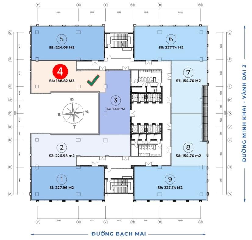 Vị trí lô S4 nằm tại góc đẹp của tòa nhà, rất phù hợp làm văn phòng đại diện hoặc trụ sở công ty.
